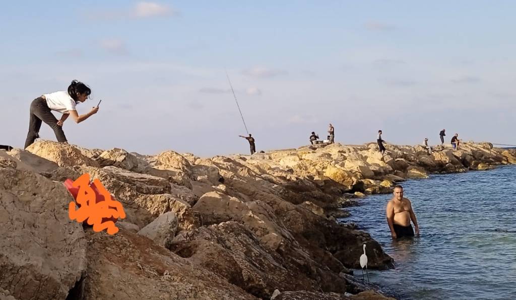אנחנו פיצחנו אגוזים מתוך שהיינו צופים על קוצים וצילמנו צלמת שצילמה מהשובר גלים בביטחה את האנפת בקר הלבנה שכיכבה בתשומת ליבם של כולם, בעוד מתוך המים עלה בהפתעה תמהוני רוסי שנעמד ובהה – בנו מצלמים את הצלמת – שצילמה את האנפת בקר הלבנה – שארבה לדגיגונים בדרמה שהתרחשה מעל ומתחת לנגלָה.